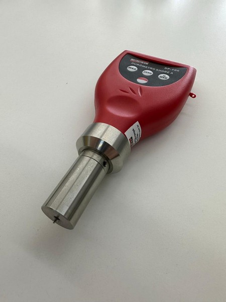 Durômetro Digital com escala D capaz de exibir valores de 0 à 100. O equipamento foi desenvolvido para determinar a dureza dos materiais.